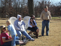Give Thanks and that is what we did, had an absolutely GREAT thanksgiving weekend, truly enjoyed the lazy days of freedom. Jeremy was out of school on Wednesday and since Granny was going to watch him for me, he went to spend the night on Tuesday. I was home alone for the 1st time since last May so the house was a little on the quiet side. I did miss my little boy, since he had such a tough time with his spinal surgery I have been clingy with him. Thursday, J’s dad came to see him and stay with him while I went to the Children’s Hospital to help deliver meals to families who had to be there on the holiday. It is always a humbling experience because that can always be us. When I got home we went to my sister’s in Sand springs to spend the day with her family, my mom and dad and my brother-in-law's brother. My sister did all the cooking and I was honestly just a slug. It was a little on the hilarious side to watch my brother-in-law, his brother, my nephew and my dad bowling on the Wii, sure wish I had my camera to video the event. Jeremy was lazy and slept until 10am on Friday and his dad came back to see him so I went and did some Christmas shopping. We got up Saturday morning and I fixed my homemade chicken and noodles, sweet potatoes and fruit salad that J loves to take out to my family Thanksgiving dinner, it was the Baker's annual dinner. It was another nice day with GREAT food, company and awesome weather. I had 2 of my cousins come from Agra that I’ve not seen in many years and not only honored my request of bringing me a piece of Oklahoma’s Very BEST red velvet cake but made an entire cake so I got to pig down 2 pieces. We had our “annual” Baker kick-ball game and I’ve included some of the funny pictures below.